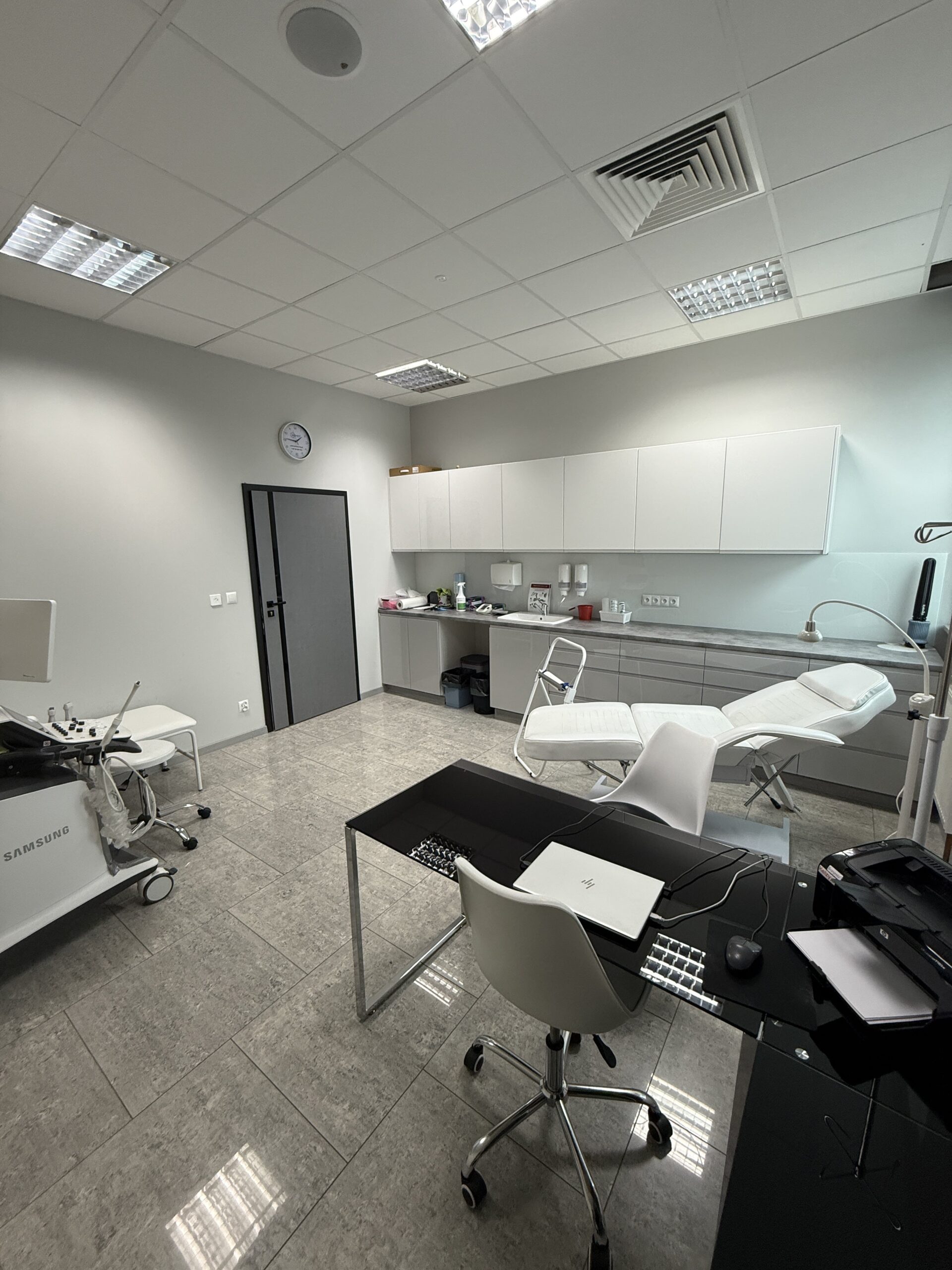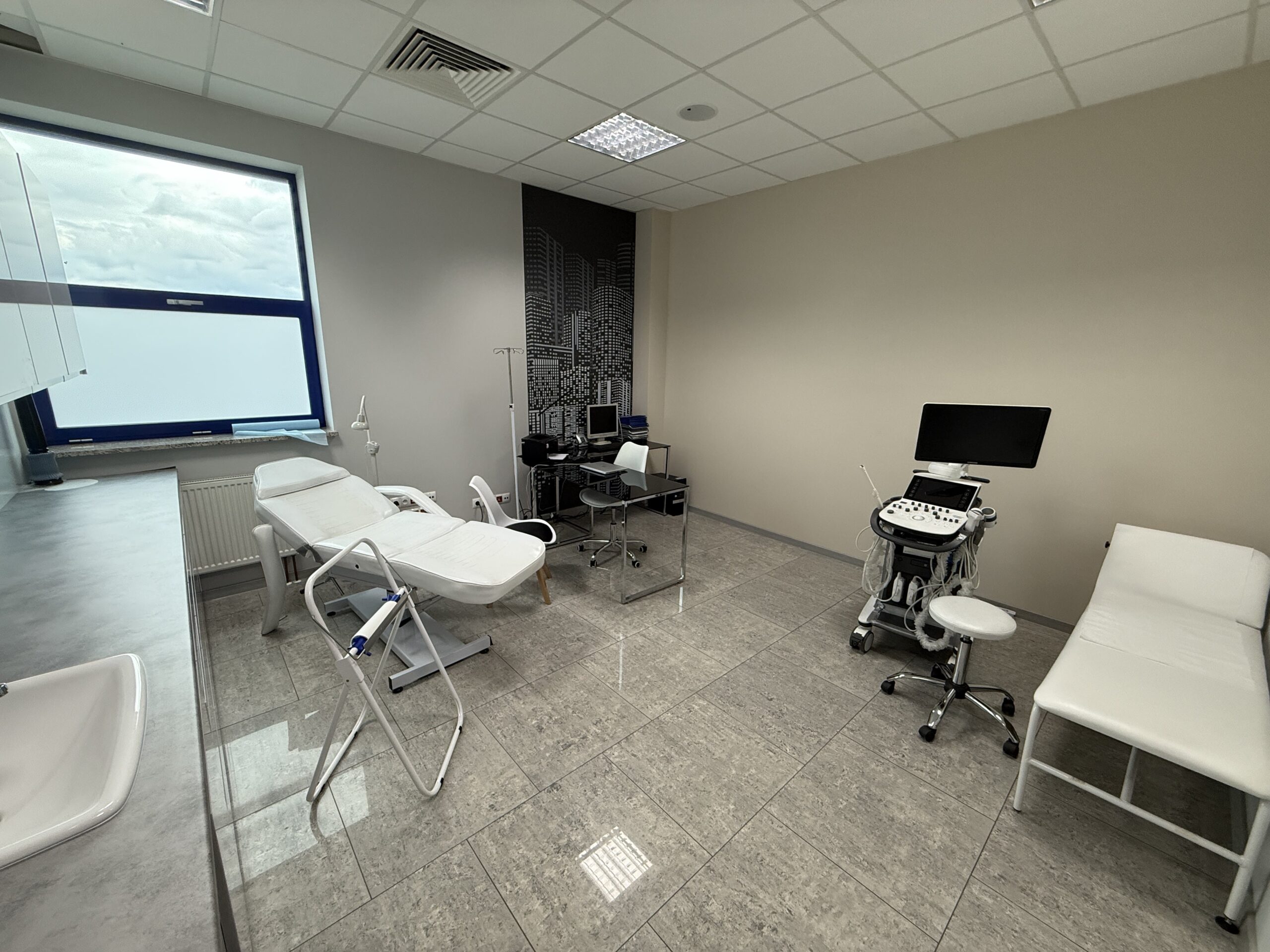 W pełni wyposażony gabinet w meble i sprzęty, w tym USG, idealny dla Flebologii, Gastroenterologii, Neurologii, Radiologii - USG narządów miękkich.